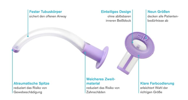Einteilige Guedel-Tuben - mehr Sicherheit durch integrierten Beißblock.
