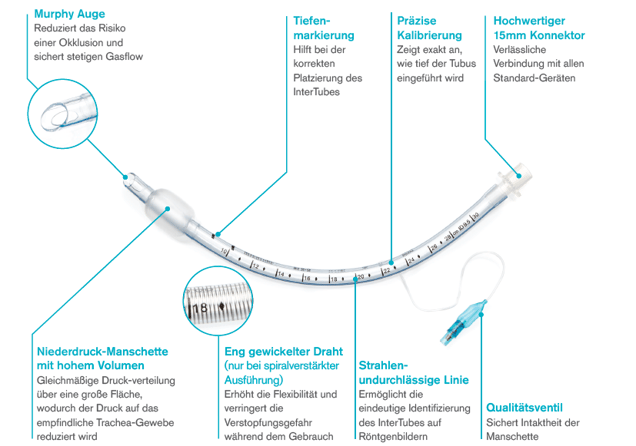 Das InterTube-Sortiment wurde für den Einsatz in der Anästhesie, Notaufnahme und Notfallmedizin entwickelt und bietet drei